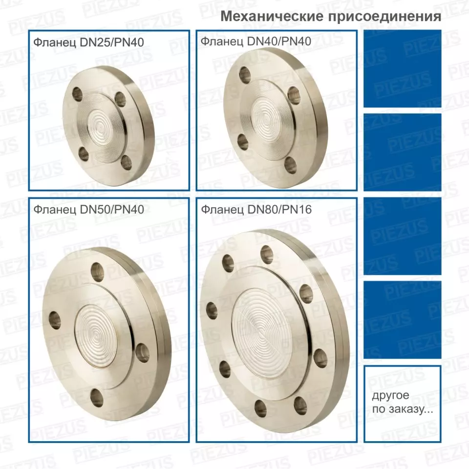 - Механическое присоединение: G 1/2ˮ; G 3/4ˮ; G 1ˮ; G 1 1/2ˮ; M20x1,5; Фланцы от DN 25 до DN 80