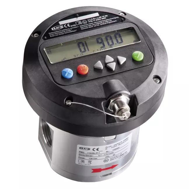 FLUX FMO 4 — современный расходомер, предназначенный для измерения объёма и мгновенного расхода пищевых и химических жидкостей. Благодаря технологии овального ротора прибор демонстрирует высокую точность и стабильность даже при работе с жидкостями высокой вязкости. Расходомер можно использовать как в стационарных трубопроводных системах, так и в мобильных решениях, таких как бочковые насосы FLUX.