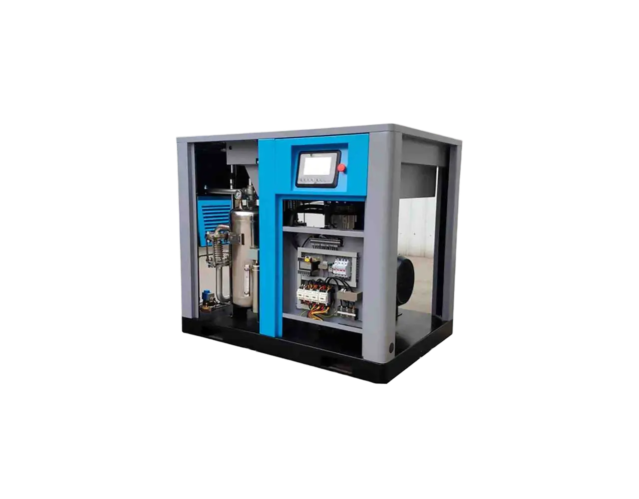2. Материал из нержавеющей стали: корпус винтового блока, роторы, резервуар водоотделителя, сборка водяного фильтра, все трубы и клапаны.