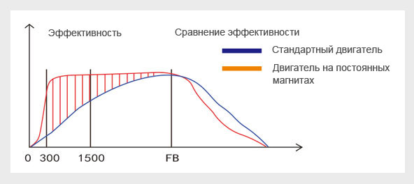 - Двигатель с постоянными магнитами обладает максимальной эффективностью, до 97%