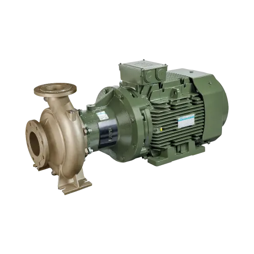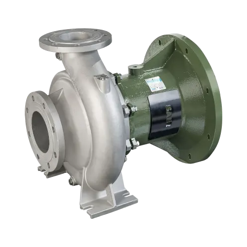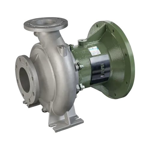 Прочная конструкция корпуса насоса с напором по центральной оси для выравнивания нагрузки на фундамент и жесткие опоры для снижения вибрации.
