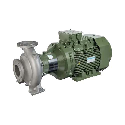 Насос можно устанавливать как в горизонтальном, так и в вертикальном положении, при этом двигатель располагается выше (необходимо заранее согласовать данный момент с производителем). Соединение между насосом и двигателем осуществляется через специальную конструкцию. Эта конструкция представляет собой корпус с валом, который устанавливается на подшипниках. Двигатель легко отделяется от насосной части, при этом насосная часть продолжает оставаться в системе.