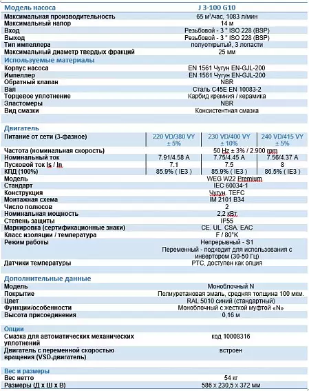 | Модель | Самовсасывающий насос Varisco JE 3-100 G10 NT20 |
