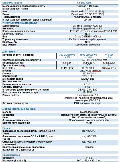 Самовсасывающий насос Varisco JE 3-180 G10 NT20: надежное решение для сложных задач