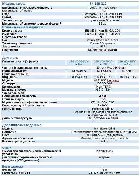 - Экономичность: Использование инвертора PSDrive® позволяет регулировать скорость двигателя, снижая энергозатраты и увеличивая срок службы насоса.