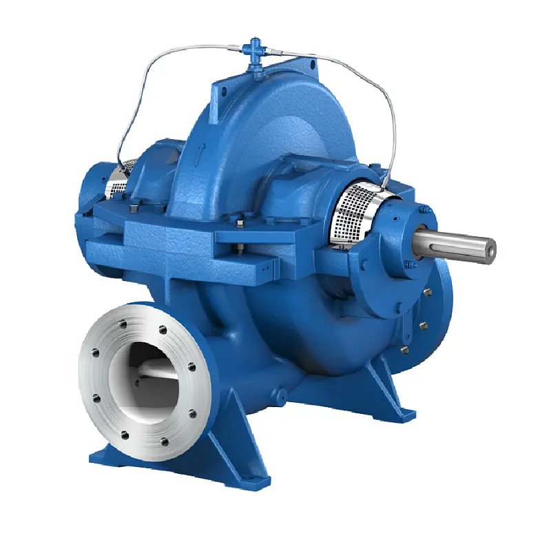 Горизонтально или вертикально устанавливаемый одноступенчатый насос со спиральным корпусом, имеющим продольный (осевой) разъем, с рабочим колесом двухстороннего входа, присоединительными фланцами по DIN, EN или ASME