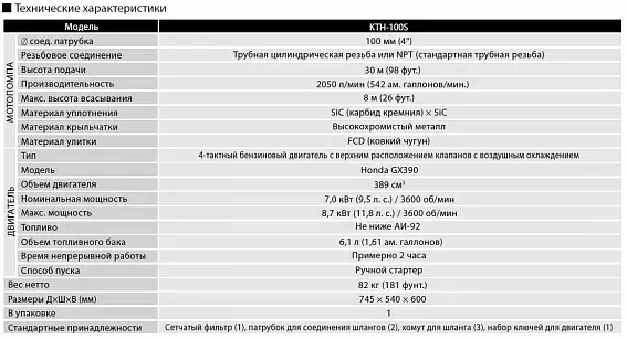 | Модель | Бензиновая мотопомпа Koshin KTH-100S o/s |