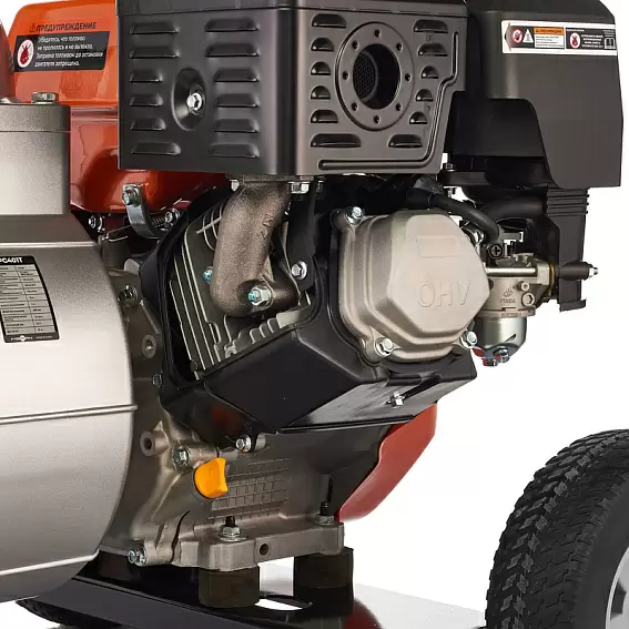 - Увеличенные колеса и эргономичная ручка позволяют легко транспортировать мотопомпу даже на сложных участках.