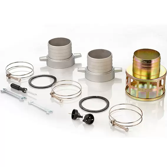 - Полный комплект аксессуаров включает фильтр-сетку, переходники и хомуты для крепления шлангов, что делает устройство полностью готовым к эксплуатации.