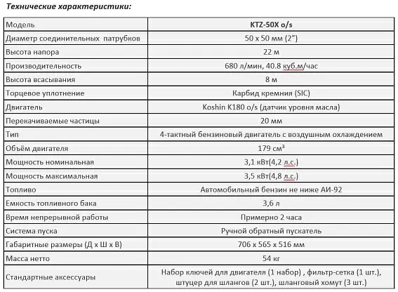 | Модель | Бензиновая мотопомпа Koshin KTZ-50X o/s |