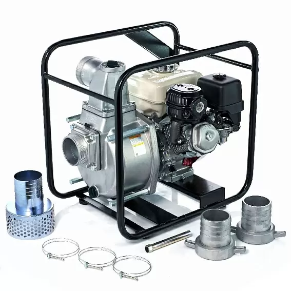 Корпус мотопомпы выполнен из силумина (сплава алюминия с кремнием), что придает устройству легкость и прочность. Крыльчатка и улитка из высокопрочного чугуна с шаровидным графитом обеспечивают повышенную износостойкость, увеличивая срок службы мотопомпы в тяжелых условиях эксплуатации. -