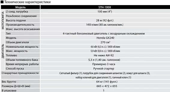 Комплектация Koshin STH-100X o/s: