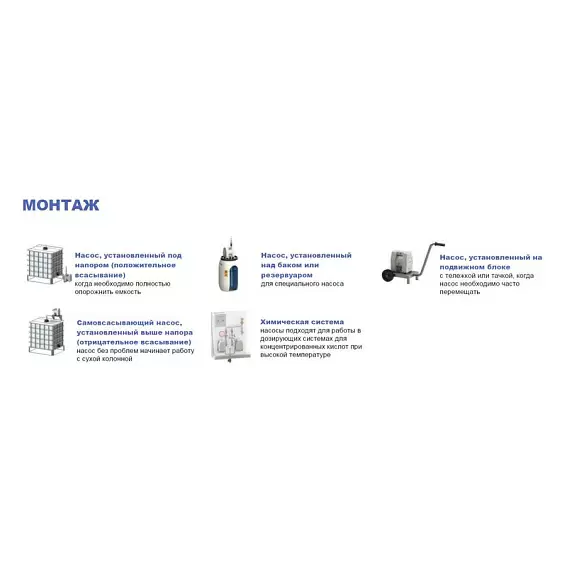 Насосы изготавливаются из таких материалов, как ПТФЭ, PE и PP, которые обеспечивают стойкость к агрессивным кислотам, щелочам, растворителям и другим химическим веществам. -