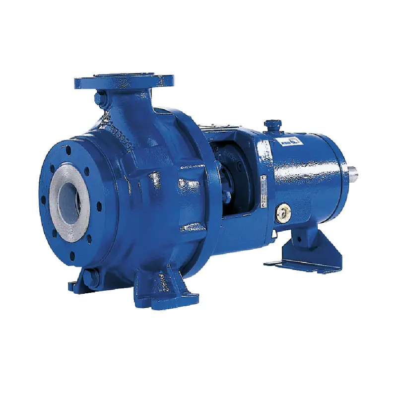 Горизонтальный насос со спиральным корпусом, радиальным разъемом, в процессном исполнении, одноступенчатый, однопоточный, с разнообразной геометрией рабочих колес: закрытое многоканальное, открытое многолопастное и свободновихревое. Исполнение по ATEX.
