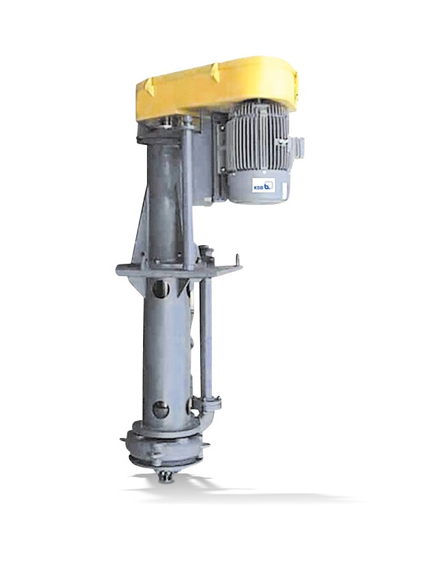 Прочный вертикальный одноступенчатый погружной насос в консольном исполнении без направляющего подшипника вала насоса, со всасыванием снизу, подшипниковая опора не контактирует с перекачиваемой средой