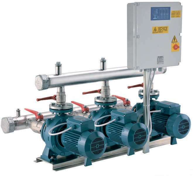 Насосная станция CALPEDA 3NM представляет собой высокоэффективное оборудование, состоящее из трех моноблочных центробежных насосов серии NM. В состав станции входят запорные и обратные клапаны, входные и выходные коллекторы, реле давления, манометр и шкаф управления.