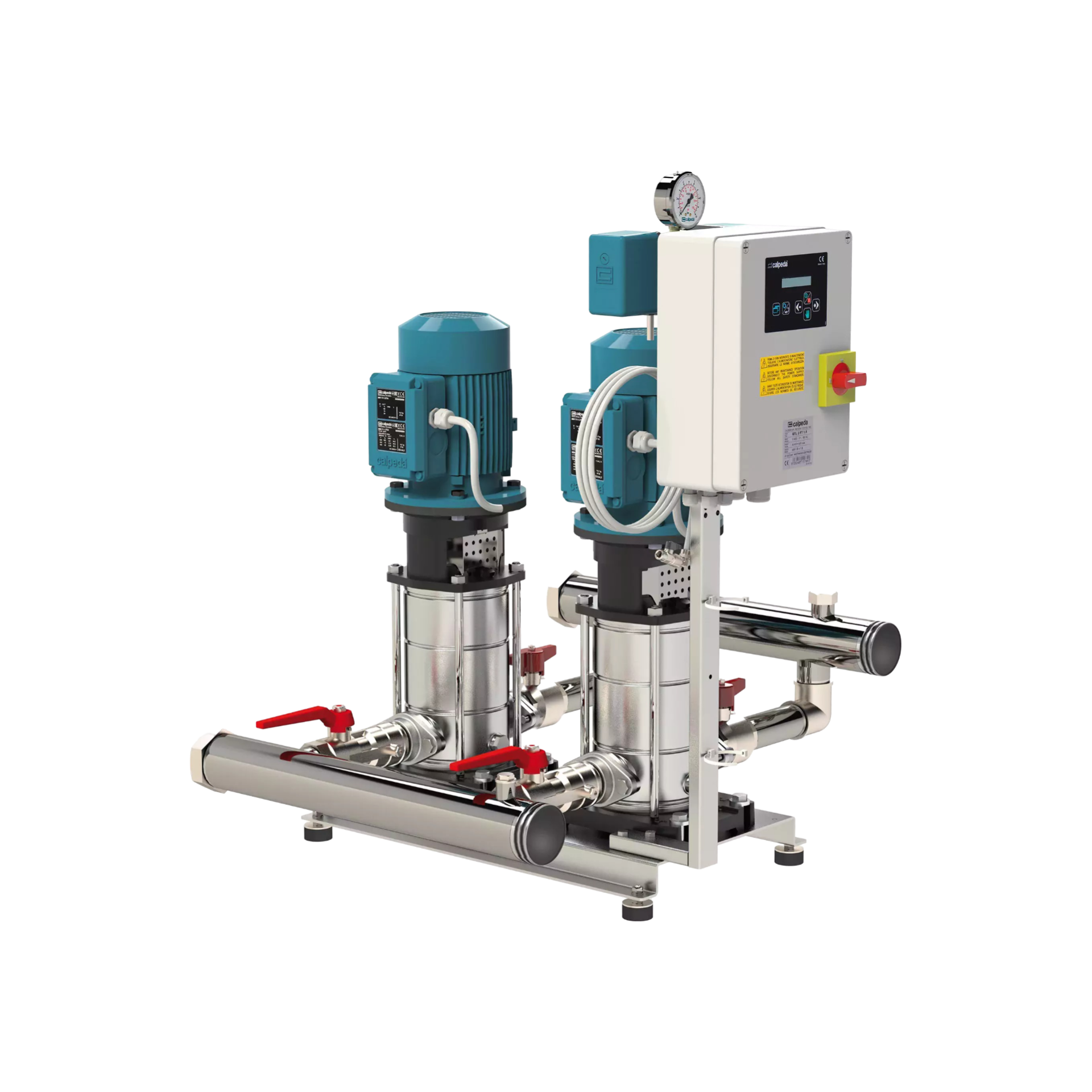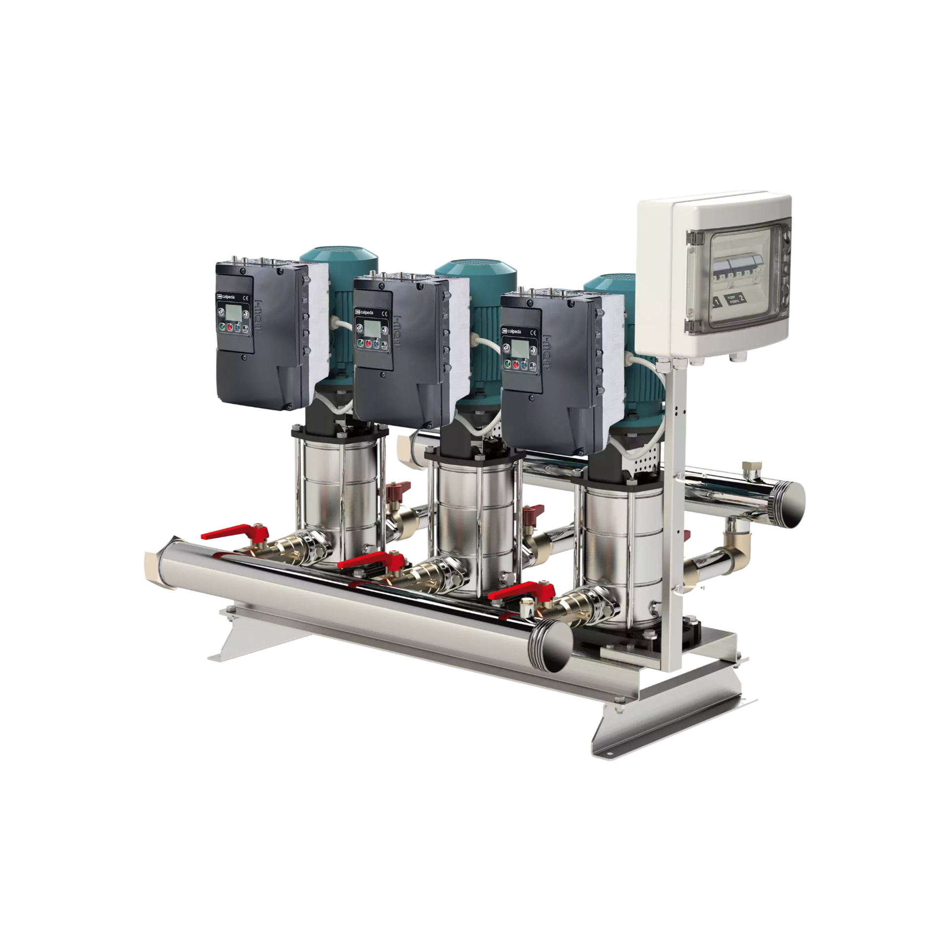 Автоматические насосные станции постоянного давления, состоящие из 1-6 насосов с переменной скоростью с частот, преобразоваелем в двигателе,установленных на общей раме (с входным и выходным коллекторами), запорных и обратных клапанов, датчика давления, манометра, пульта