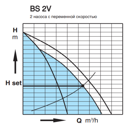 Пульт управления с электронным блоком управляет работой насосов и сменой насосов с постоянной скоростью. Насосы работают в каскаде от сигнала от датчика давления. Постоянное давление обеспечивается насосом с переменной скоростью, а насосы с постоянной скоростью включаются, когда потребность превышает производительность насоса с переменной скоростью.BSV