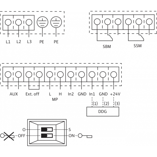 Подключение к сети: 3-400 В ± 10 %, 50 Гц (варианты 3-380 В, 60 Гц по запросу).