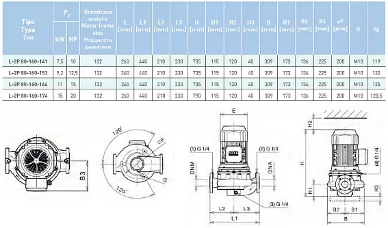 | Модель | Циркуляционный насос In-Line SAER L-2P 80-160-174 |