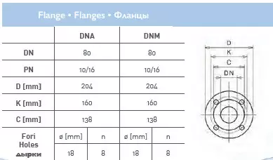 | Диаметр вход/выход мм | Фланец DN80 - DN80 |