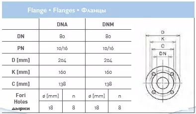 | Диаметр вход/выход мм | Фланец DN80 - DN80 |