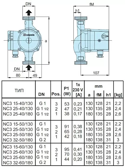 | Модель | Циркуляционный насос Calpeda NC3 25-50/180 V.230/50 |
