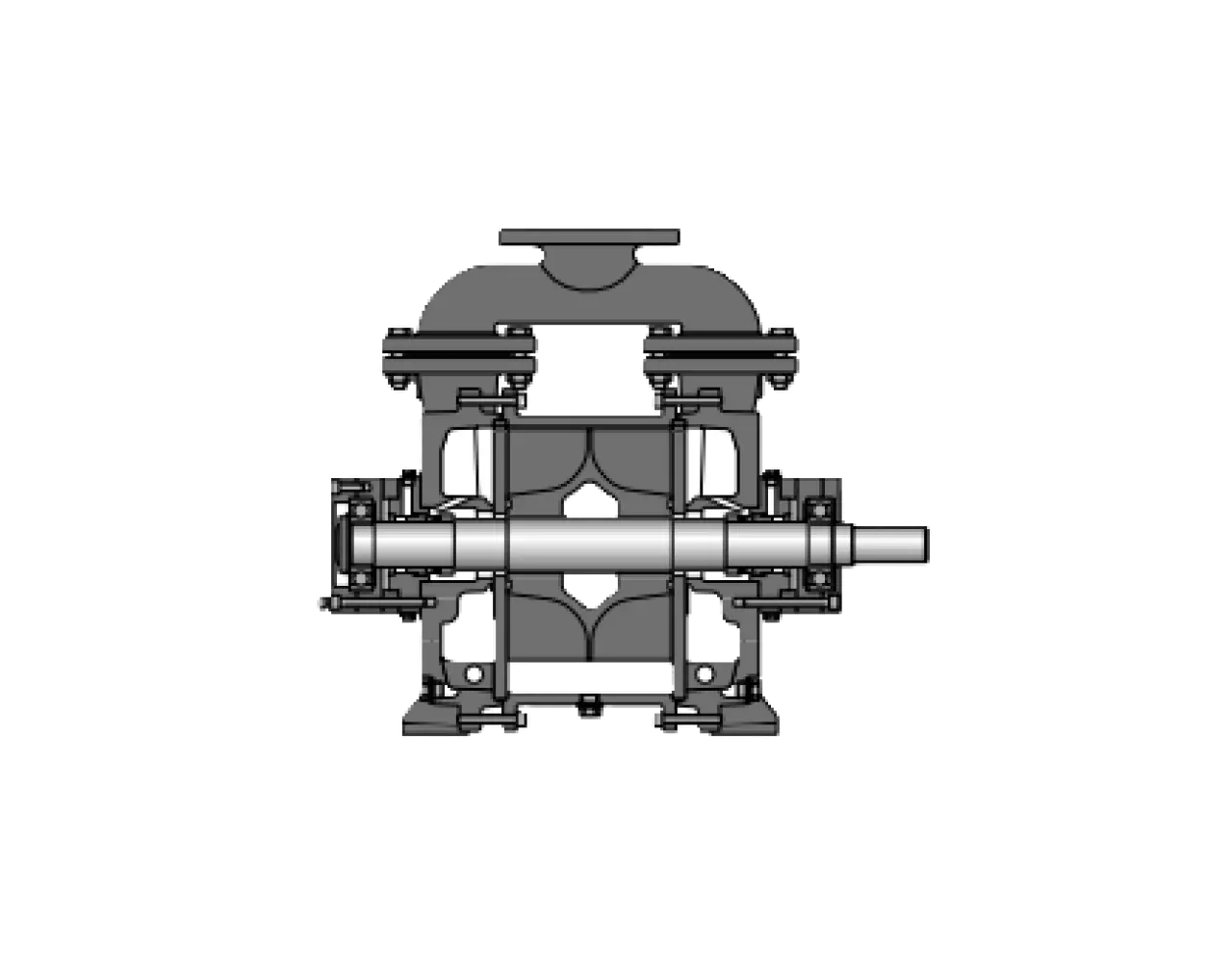 Агрегаты данного типа функционируют по принципу прямого вытеснения. Внутренняя камера заполнена частично жидкостью и по мере вращения эксцентрично установленного лопастного колеса образуется жидкостное кольцо. Ячейки между лопастями меняют объем, сжимая газ, который затем вытесняется через выпускное отверстие. LVPG - версия с внешними роликоподшипниками, одинарным торцевым уплотнением и рабочим колесом двойного всасывания.