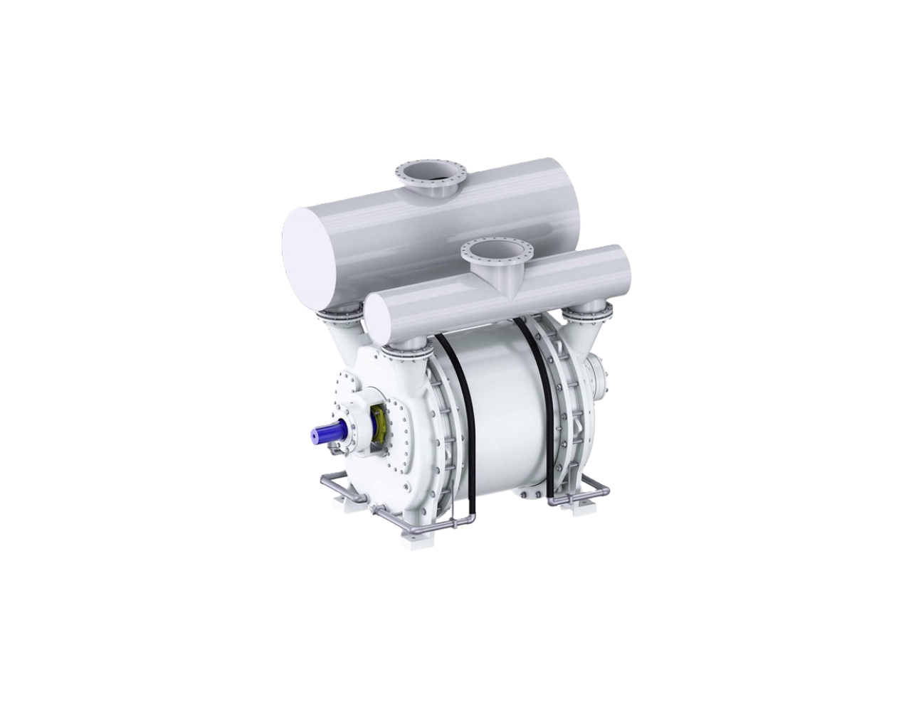 Простая одноступенчатая конструкция, эксцентриковое рабочее колесо, два всасывающих патрубка. В качестве конструкционных материалов используются различные марки нержавеющей стали (аустенитная, супер аустенитная, дуплексная, супер дуплексная и другие по запросу). Расход рабочей жидкости максимально экономичный, степень сжатия саморегулируемая. Вал герметизирован сальниковым уплотнителем с фонарными кольцами, но также доступны и другие варианты исполнения.