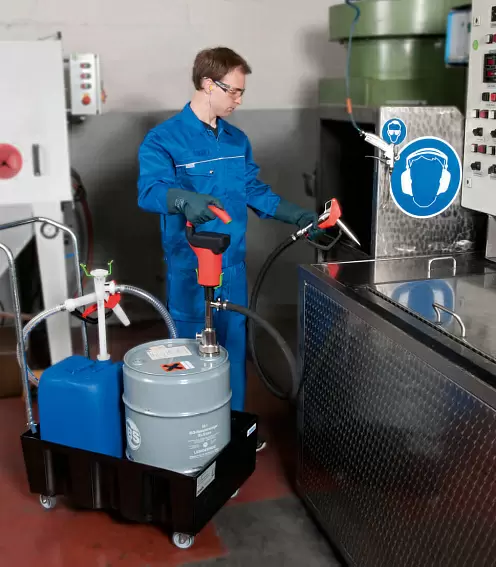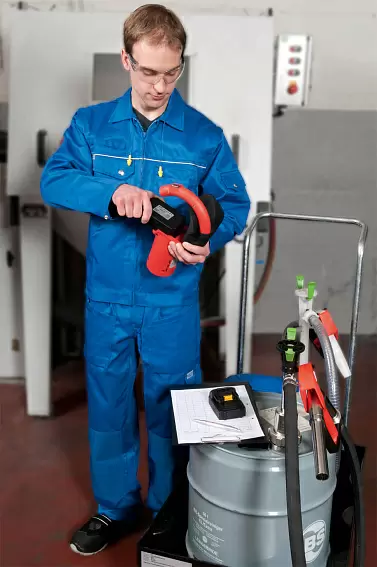 - Один заряд аккумулятора позволяет опорожнить до 17 бочек по 200 л или 3 IBC-контейнера.