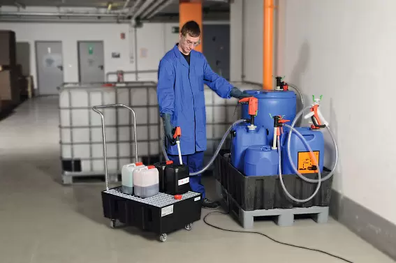 - Универсальность для работы с разными типами ёмкостей (канистры, бочки, IBC).