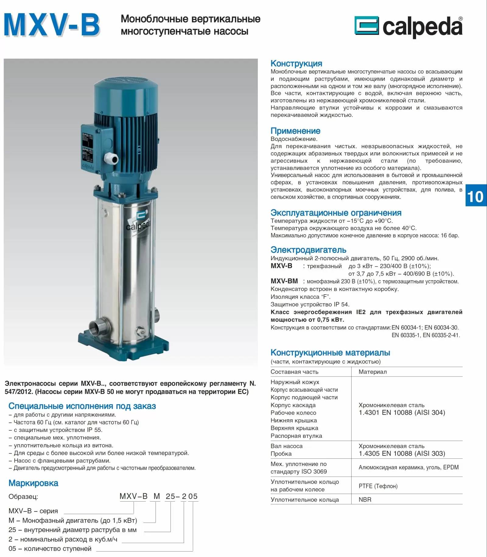 Конструкция и комплектация Calpeda MXV-B EI