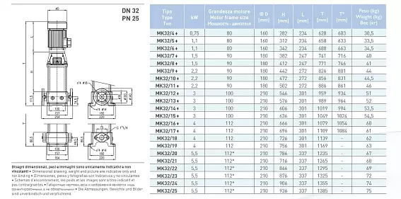 | Модель | Вертикальный многоступенчатый насос Saer MK32/10 - 80L-V18 - 230/400V 3~ |