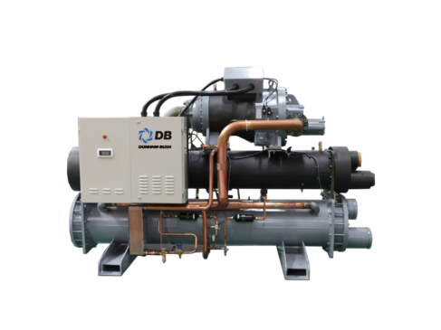 Чиллер Dunham‑Bush WCHX‑A с горизонтальными винтовыми компрессорами и водяным охлаждением конденсатора.