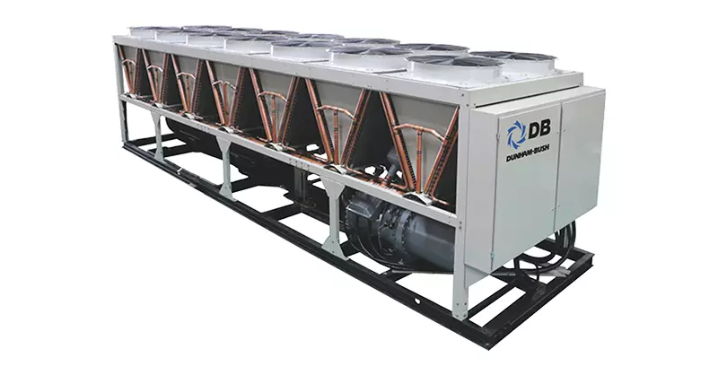 Чиллер Dunham‑Bush ACHX‑B с горизонтальными винтовыми компрессорами и воздушным охлаждением конденсатора.