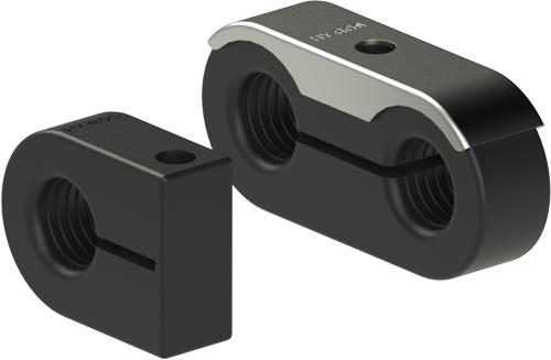Благодаря предварительному натяжению трубы или линии надежно фиксируются, а крышка зажима гарантирует высокую устойчивость. Пленочный шарнир соединяет две половины зажима, который крепится с помощью болтов или приварных шпилек M6.