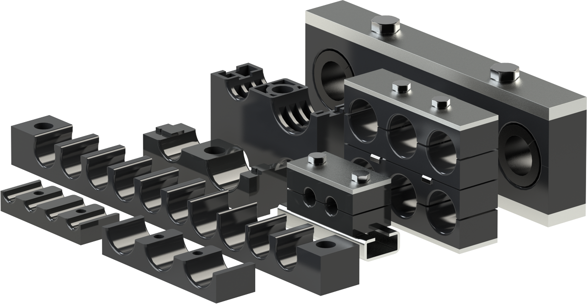 Крепежные элементы подходят для монтажа труб, шлангов и кабелей, что делает их идеальными для множества промышленных и инженерных приложений. -