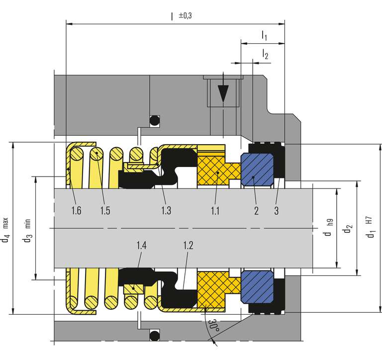 Благодаря свободно вставленному подвижному кольцу, а также высокой подвижности сильфона по оси, EA560 самостоятельно адаптируется к отклонениям вала и перекосам. Длина контактной зоны между сильфоном и валом оптимально учитывает два требования: Простота монтажа (сниженное трение) и достаточное сцепление для передачи крутящего момента. Кроме того, EA560 отвечает особым требованиям к уровню утечки. Собственное производство элементов скольжения обеспечивает высокую степень гибкости в плане особых запросов и специальных конструкций.