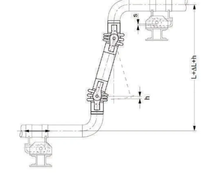 Компенсация осуществляется за счёт поворота секций трубопровода вокруг осей шарниров или карданных соединений, обеспечивая гибкость конструкции без удлинения сильфона.