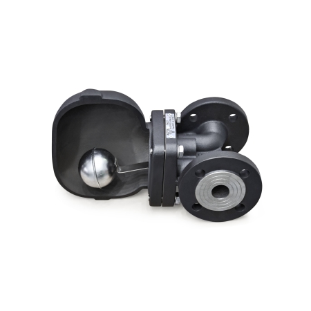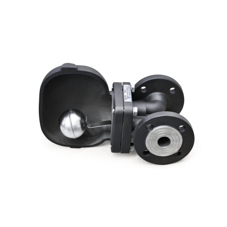 Его работа основана на разнице в плотности пара и конденсата. Когда корпус заполняется конденсатом, поплавок, имеющий полую структуру, поднимается и открывает выходной клапан. Неконденсируемые газы удаляются через встроенный термостатический воздухоотводчик, расположенный в верхней части устройства.