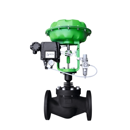 АСТА Р543 – односедельный двухходовой регулирующий клапан высокотемпературной конструкции, который управляется электрическим/пневматическим приводом.