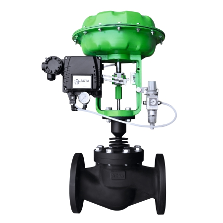 АСТА Р533 – односедельный 2-ходовой регулирующий клапан высокотемпературной конструкции, который управляется электрическим/пневматическим приводом.