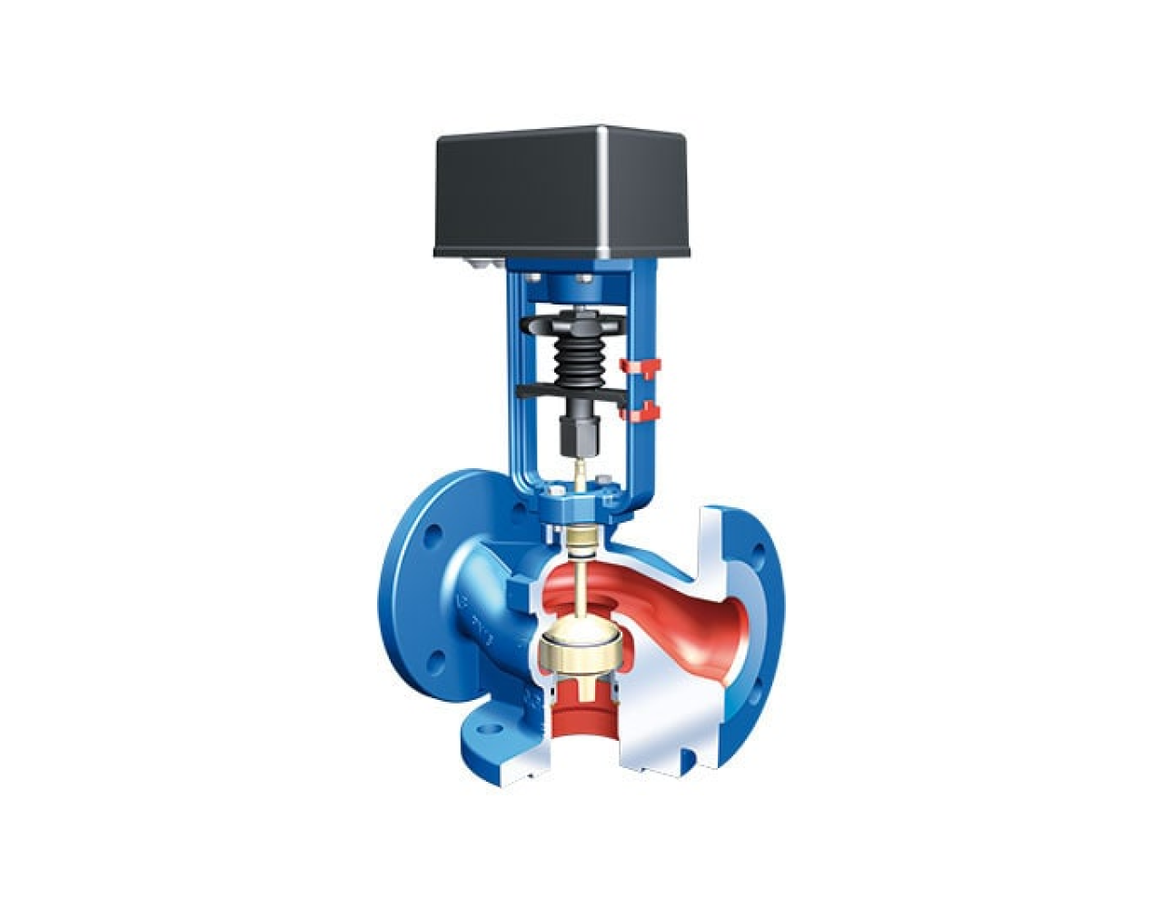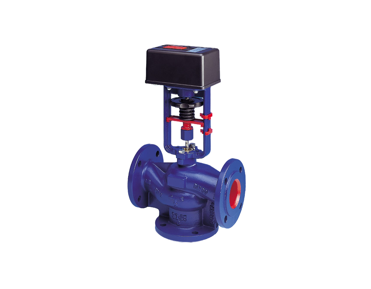 Клапан управления для систем отопления, вентиляции и кондиционирования, с проходным типом и электрическими приводами, диаметром DN 15 – 100, с рабочим давлением от PN 6 до PN 25. Используемые материалы: EN-JS1049, EN-JL1040, CC491K, CuSn5Zn5Pb5-C.