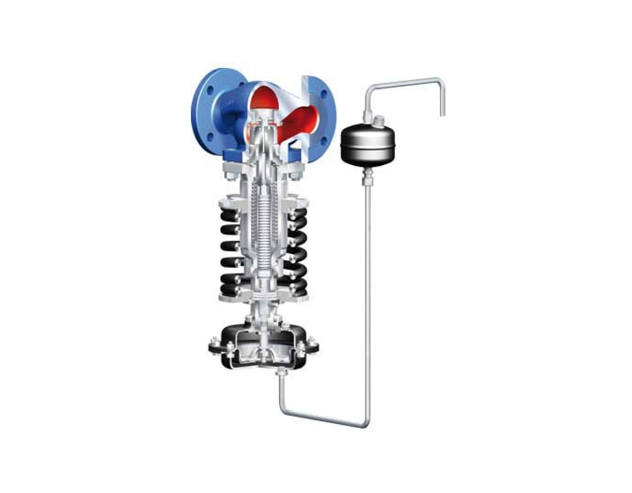 Регулятор давления после себя предназначен для работы в качестве пропорционального регулятора прямого действия, без вспомогательного источника питания, для понижения и регулировки высокого давления на входе до более низкого давления на выходе. Редуцируемое давление регулируется после клапана, т.е. клапан закрывается, когда давление нарастает.