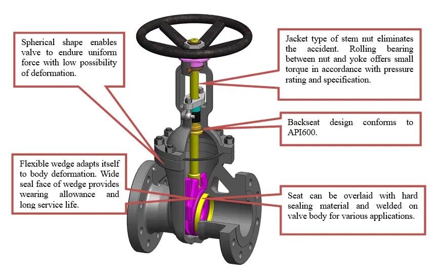 - Конструкция задвижек соответствует стандарту API600, ASME B16.34